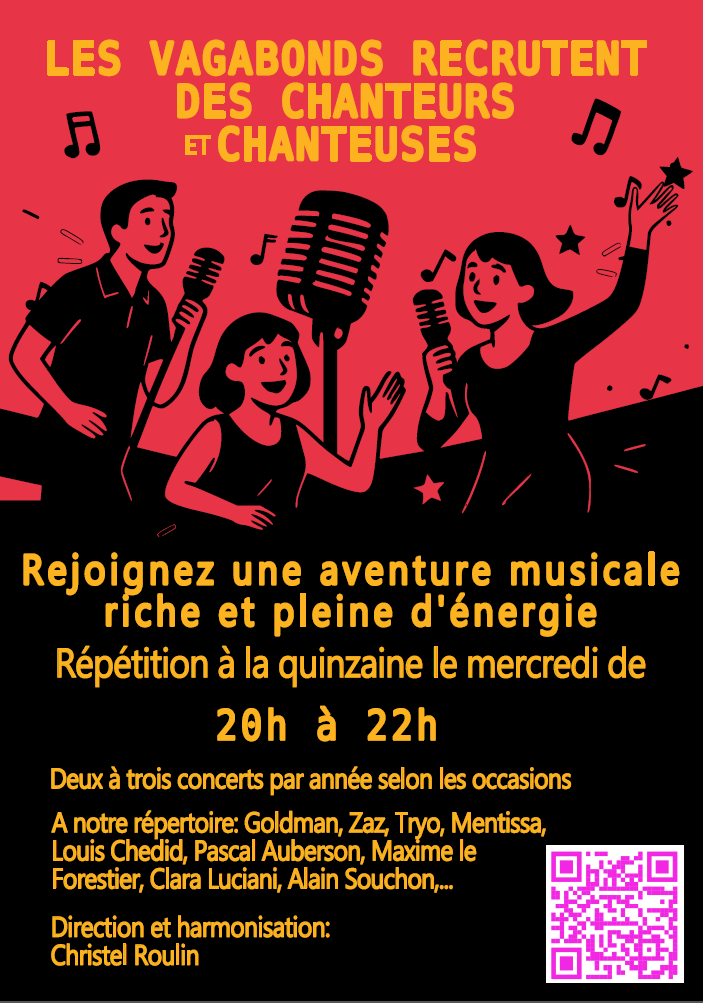 Nous chantons : Zaz, Souchon, Voulzy, Le Solda Rose, Vianney, Luciani, Hair, McBroom, Tryo, The Weather Girls, Goldmann, Auberson, etc.